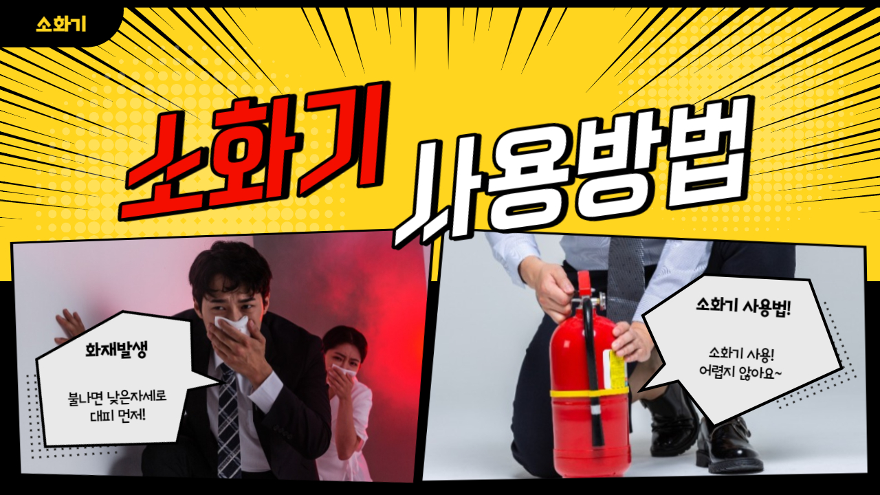소화기 사용법 안내 소화기는 화재 발생 시 빠르게 화재를 진압하는 데에 사용되는 중요한 도구입니다. 올바르게 사용하려면 아래의 단계를 따라 소화기를 사용하는 방법을 익혀보세요.