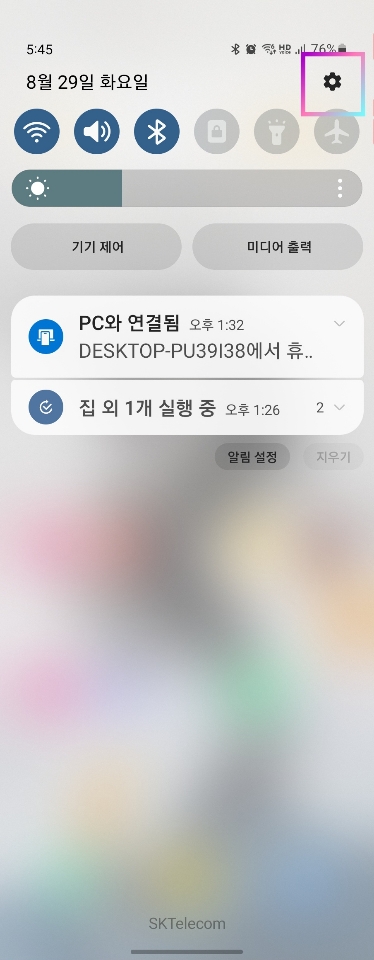 1. 휴대전화 설정을 눌러줍니다. (톱니바퀴모양)