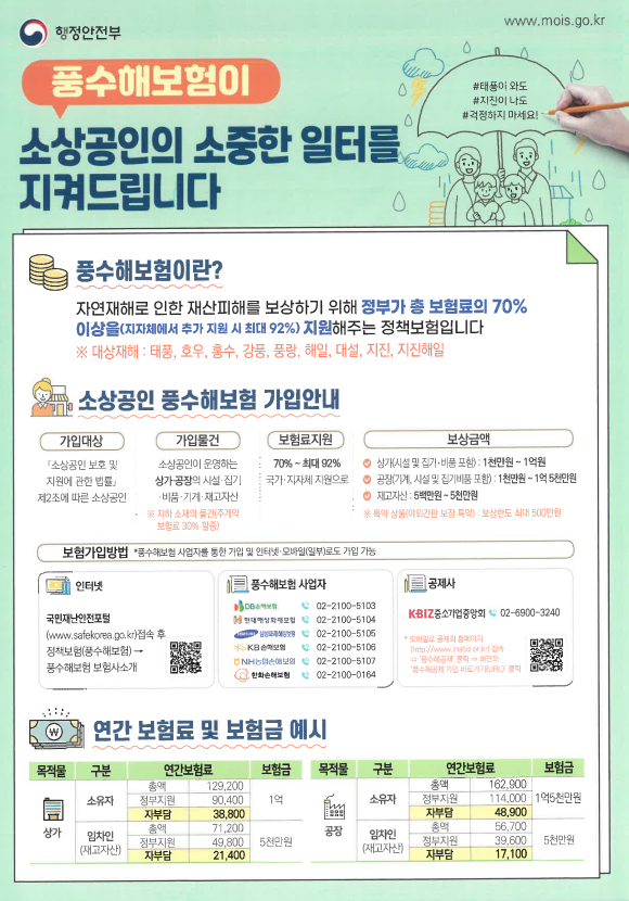 행정안전부 풍수해보험을 가입하여 자연재난에 대비하시기 바랍니다.