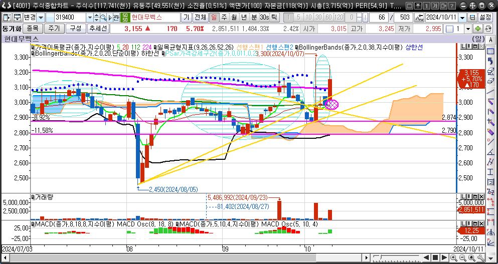 10.8. (화) 차트 분석한 현대무벡스 종목 결과입니다.